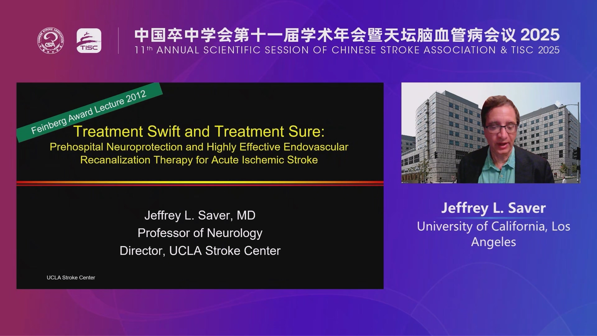 【学术年会】Jeffrey L.Saver-Treatment Swift and Treatment Sure:Prehospital Neuroprotection and Highly Effective EndovascularRecanalization Therapy for Acute Ischemic Stroke